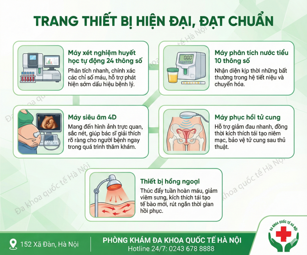 Đa Khoa Quốc Tế Hà Nội – địa chỉ phụ khoa uy tín hàng đầu, được Sở Y tế cấp phép. Khám an toàn, hiệu quả, tư vấn 1–1 miễn phí, kết quả rõ rệt. Khám chuẩn – chữa nhanh – an tâm lâu dài.