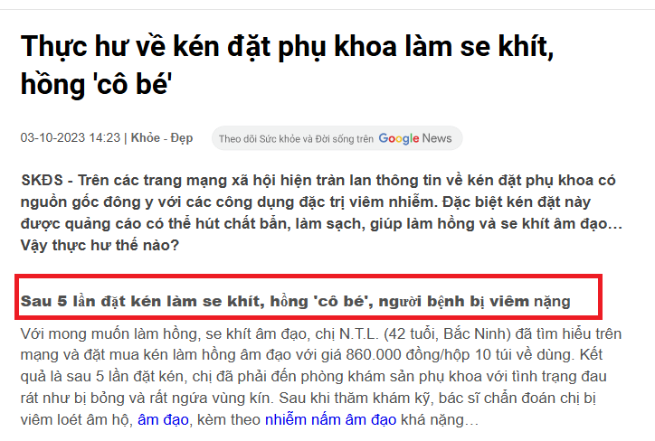 Chỉ cần một thao tác tìm kiếm với cụm từ “làm hồng vùng kín”, bạn sẽ choáng ngợp trước vô số quảng cáo giá rẻ: vài chục, vài trăm nghìn, kèm theo những lời hứa hẹn “trắng hồng tức thì”, “hiệu quả sau 1 lần”.
