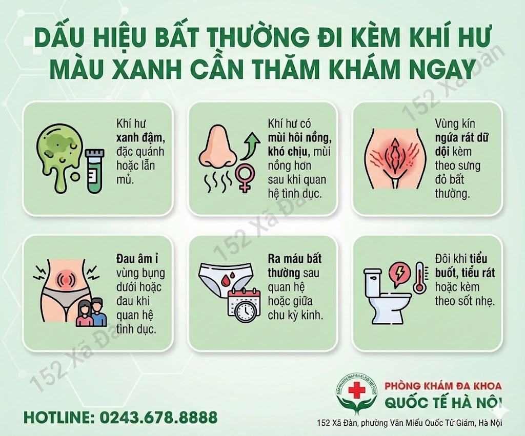 Nếu bạn nhận thấy bất kỳ triệu chứng nào kể trên, đặc biệt là khí hư màu xanh, hãy đến gặp bác sĩ chuyên khoa ngay. Việc chẩn đoán và điều trị kịp thời sẽ giúp bạn tránh được những biến chứng nguy hiểm.